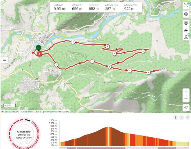 L’échauffement part le long de l’ouvèze mais monte par une jolie single dans les bois. On redescend traverser la rivière à Pierrelongue et retour par le site d’escalade.